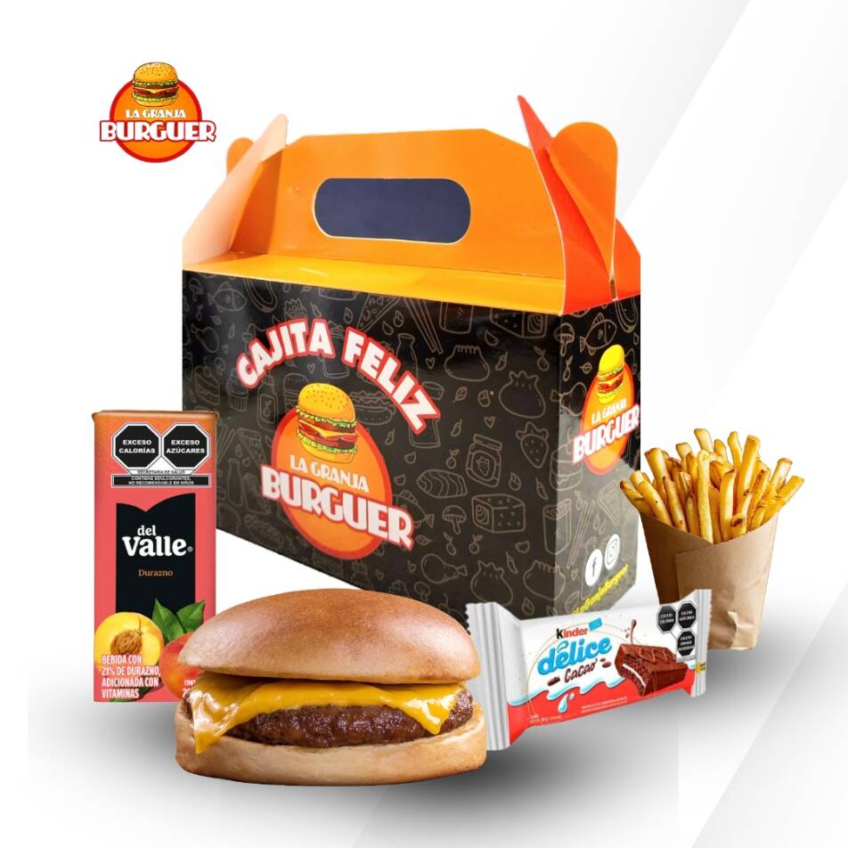 Hamburguesa Kids, papas personales, jugo y chocolate kinder delice