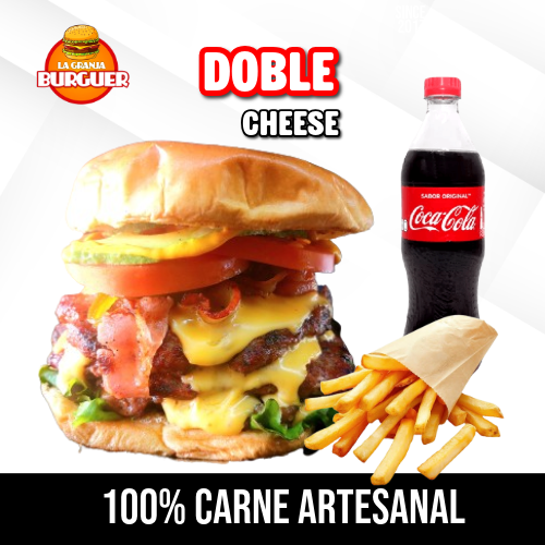 Hamburguesa con doble carne y doble queso con papas y refresco