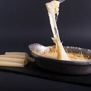Camarón y arrachera asados al carbón, queso asadero, cebollitas y aderezo.