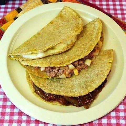 Quesadilla de tortilla hecha a mano con queso y guiso de tu preferencia.