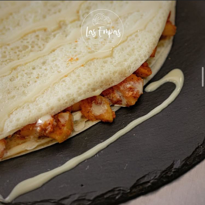 Crepa rellena despechuga de pollo a la plancha con queso