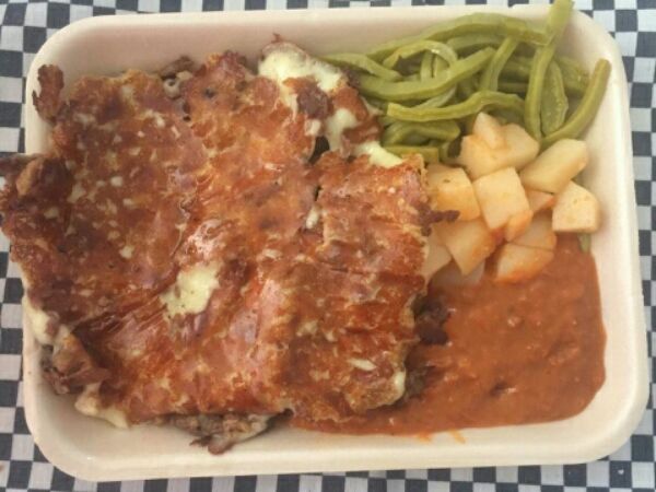 Elige tres guisos. Va acompañado de frijoles, papas y nopales.