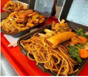 Elige entre arroz o spaguetti y 1 box de camarones.