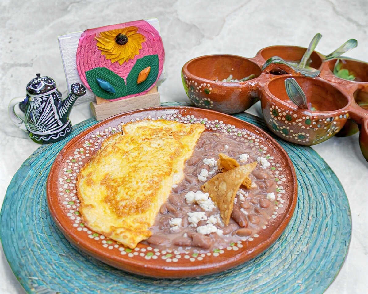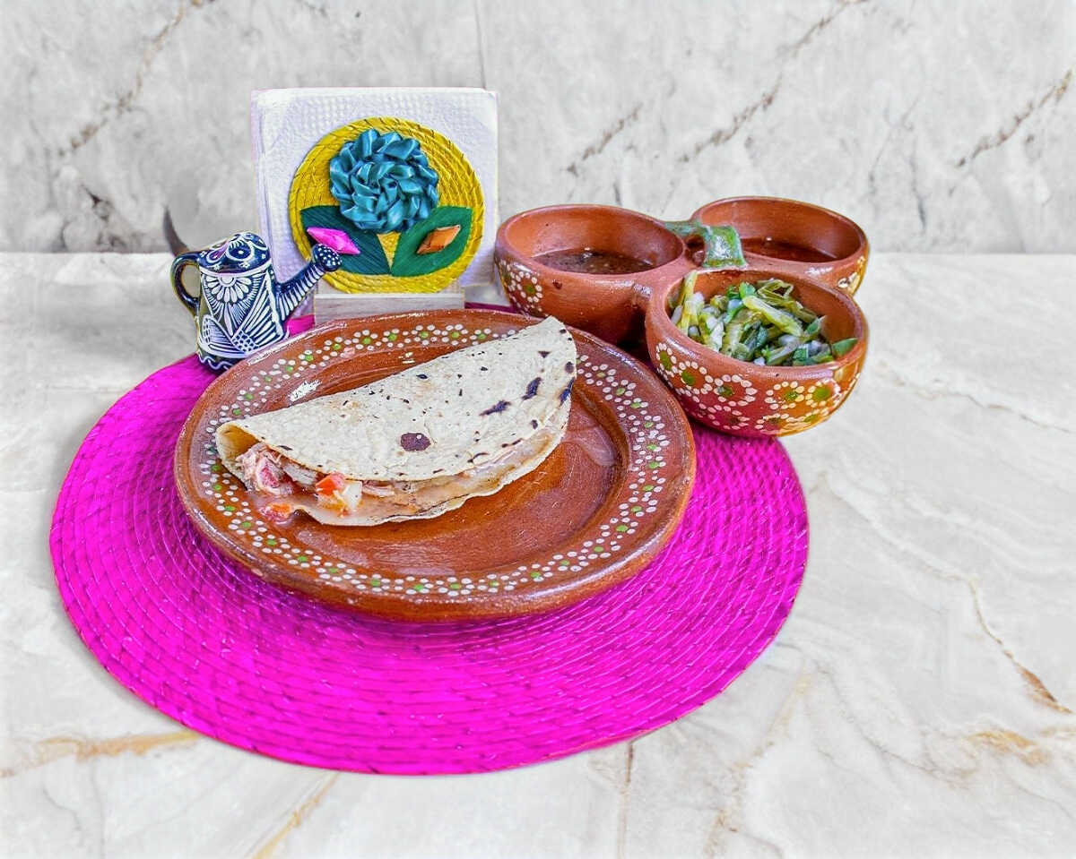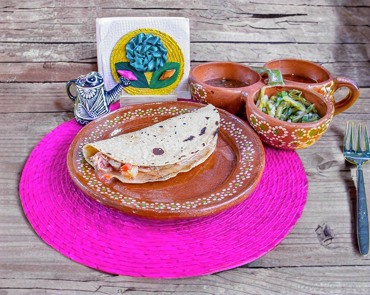 2 Pzas acompañados con frijoles refritos. Tortillas hechas a mano y salsas.