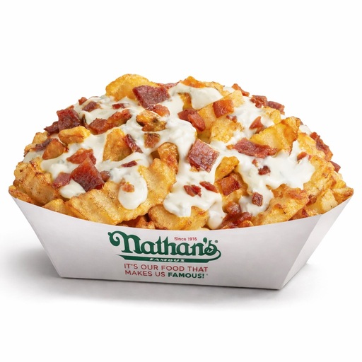 Nuestras clásicas onduladas papas a la francesa preparadas con aderezo ranch y trocitos de tocino