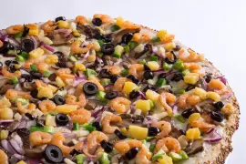 Camarones sazonados, vegetales a elección y aderezo de ajo o de chipotle.