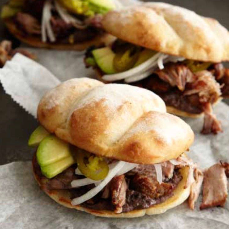 Queso de puerco, queso, jitomate, cebolla, chile, aguacate, mayonesa