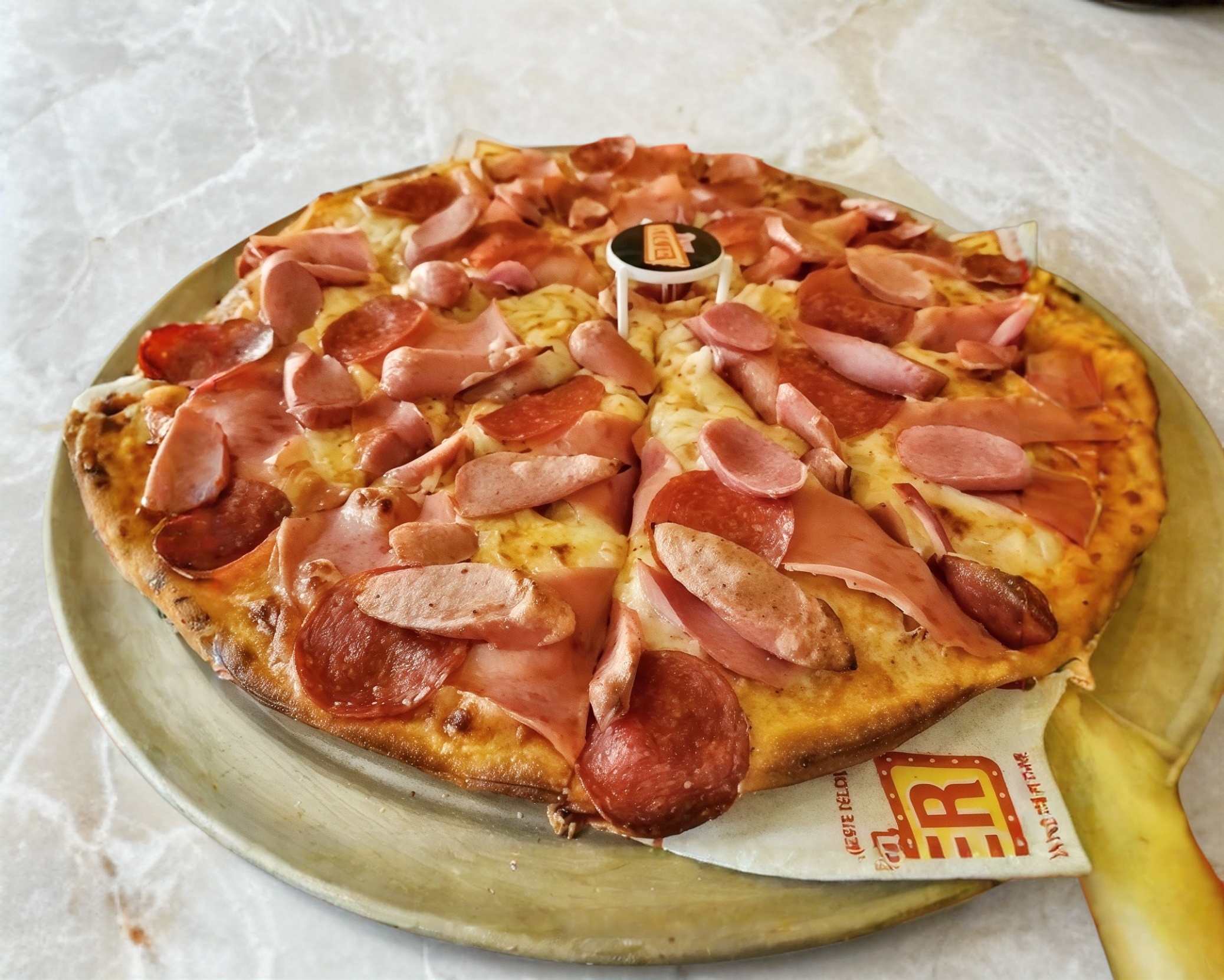 Pizza pepperoni de aproximadamente, 36 cm, 8 Rebanadas máximo para dos personas, incluye, salsa de tomate, queso, pepperoni, masa de pizza.