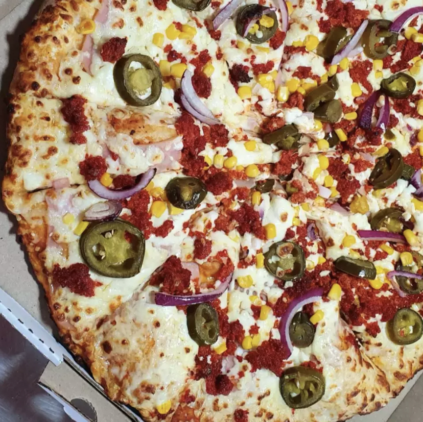 Pizza grande (36 cm) de Salchicha con chorizo, jalapeños picositos y cebolla