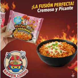 El Volcano Paldo Carbonara 120 g ofrece una combinación explosiva de ramen ultra picante con la suavidad de una salsa cremosa estilo carbonara. Sus fideos firmes y su mezcla de queso con notas especiadas lo convierten en una opción única para quienes disfrutan de sabores intensos.