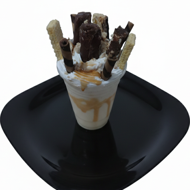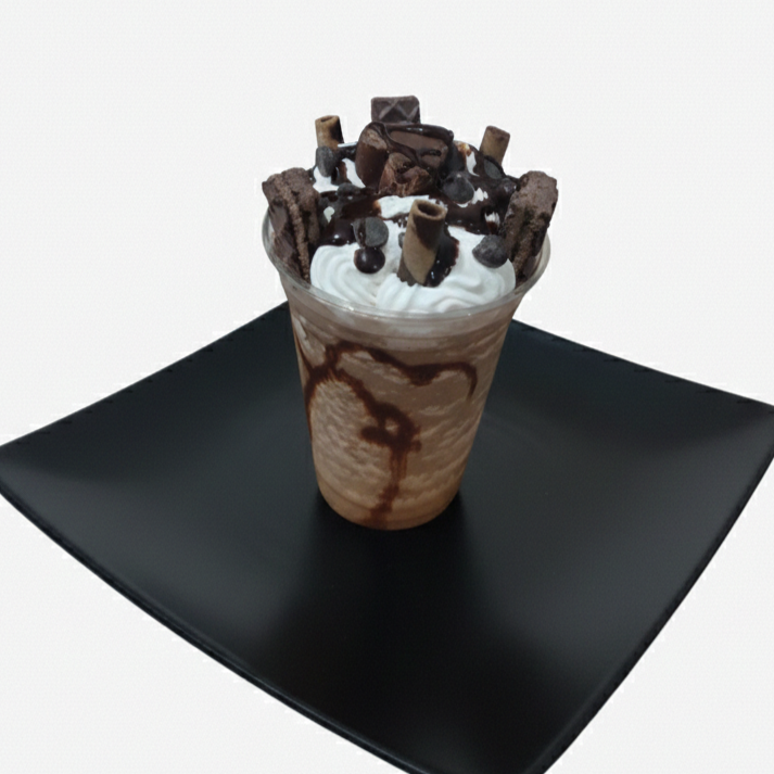 Bebida fría a base de Chocolate con jarabe de chocolate Hershey, acompañados de snacks; 3 galletas suavicremas de chocolate, 3 popotes chocolate y chispas de chocolate, un malvabisco de chocolate, lleva incluida crema batida (en este caso algunos toppings se mandaran en un bolsa aparte por el bien de la bebida)