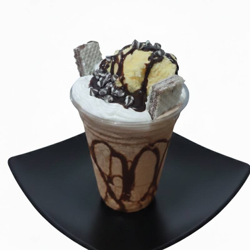 Bebida fría a base de moka con jarabe de chocolate Hershey, acompañados de snacks; 2 galletas cremax chocolate, chispas mosaico, lleva incluida crema batida y una cremosa bola de nieve sabor vainilla.