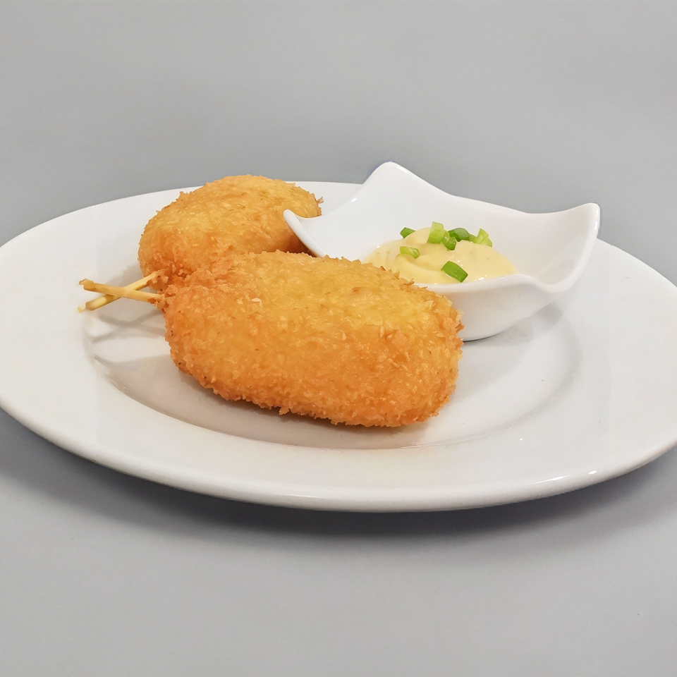 Por fuera queso manchego, salsa spicy y cebollín, por dentro pollo empanizado, aguacate y chile xcatic