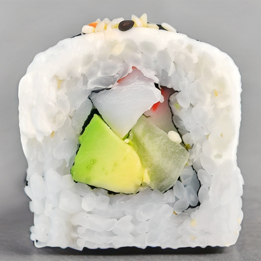 Por fuera ajonjolí por dentro surimi, Philadelphia, pepino y aguacate