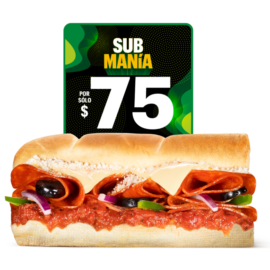 Una nueva promo llena de Sabor: Footlong _+ Sabritas. Elige tu Footlong entre Pizza Sub y Jamon de Cerdo y acompaña con Sabritas