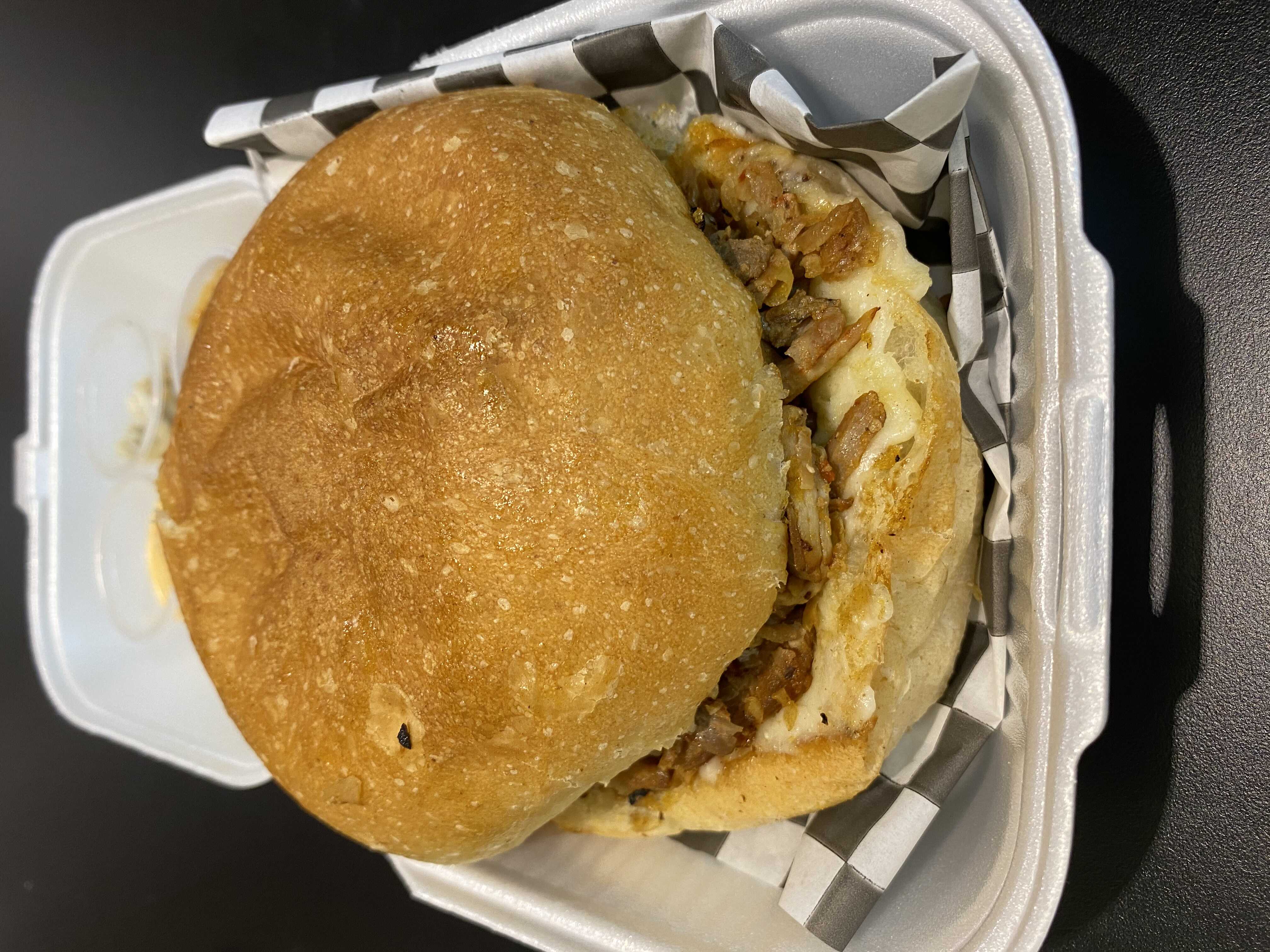 Pan con sabor de bolillo preparado con queso y bistec de res sin verdura