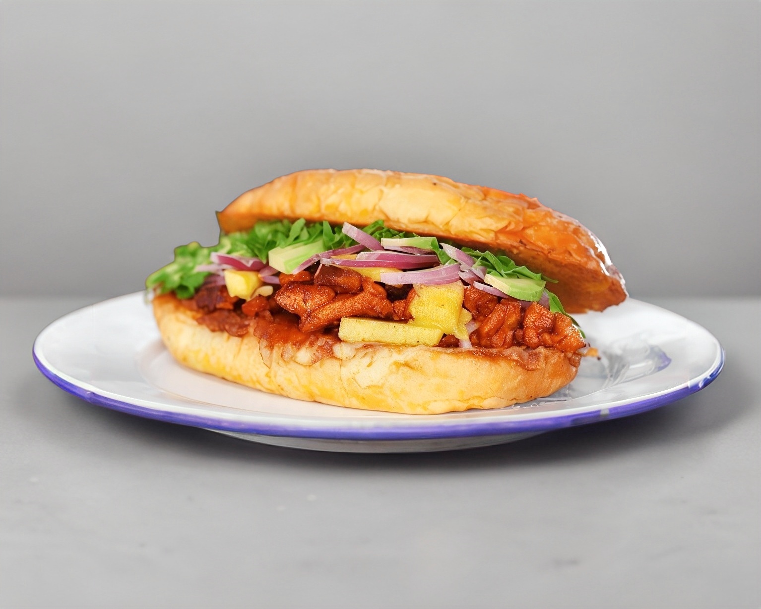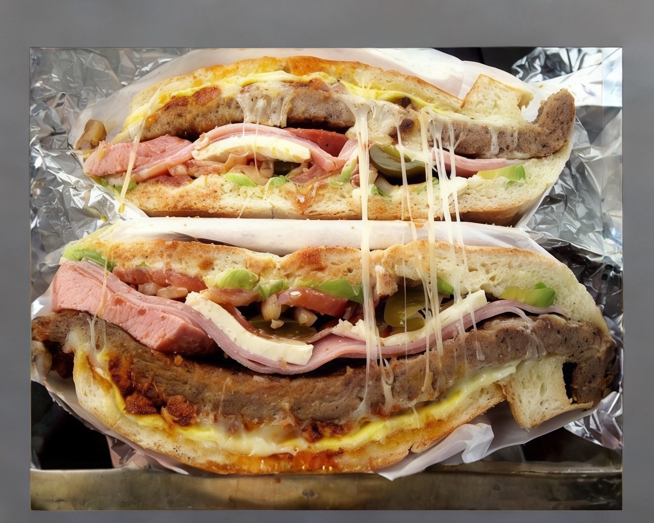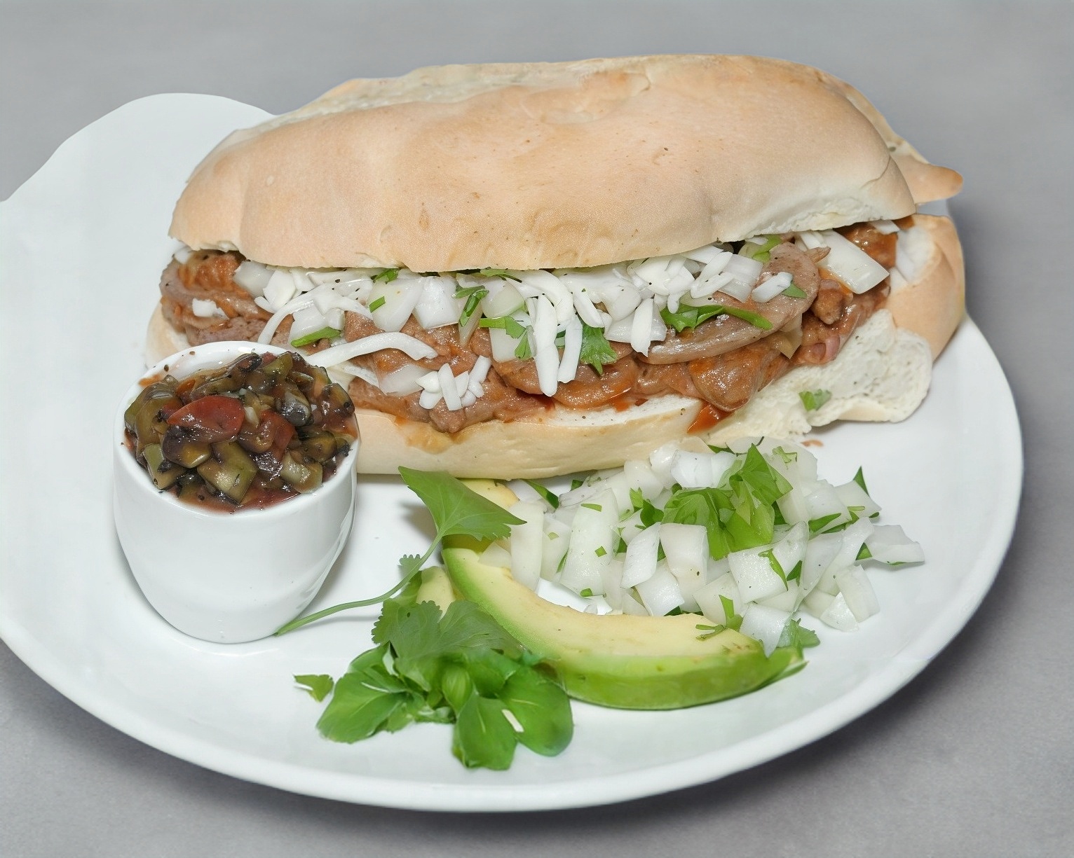 Bistec, pastor, chorizo, jamón, queso, tomate y aguacate. A parte cilatro y cebolla.