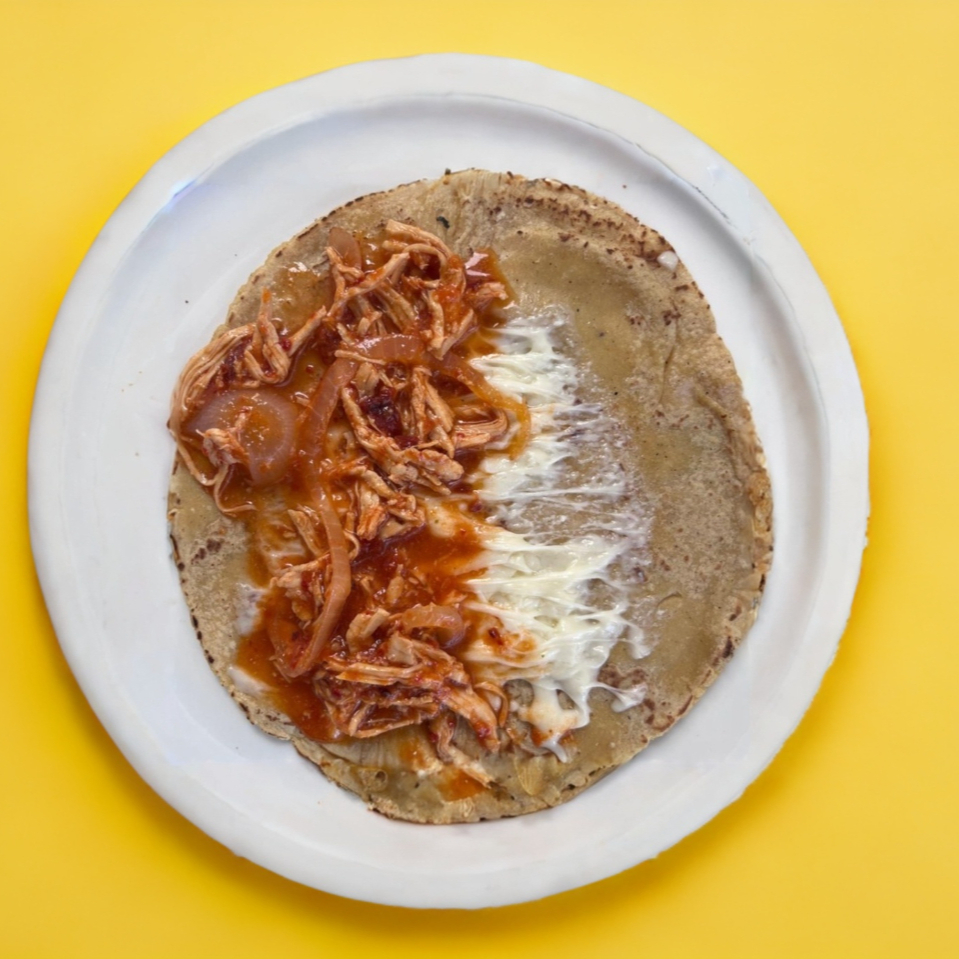 QUESADILLA DE TINGA CON FRIJOLES