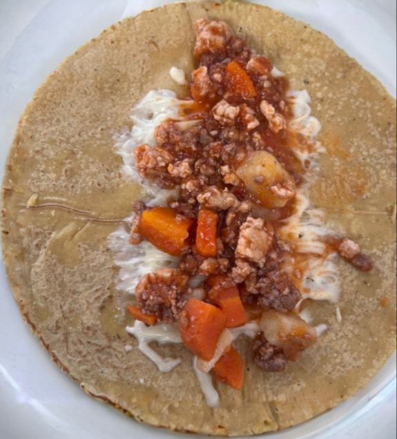 QUESADILLA DE PICADILLO CON FRIJOLES