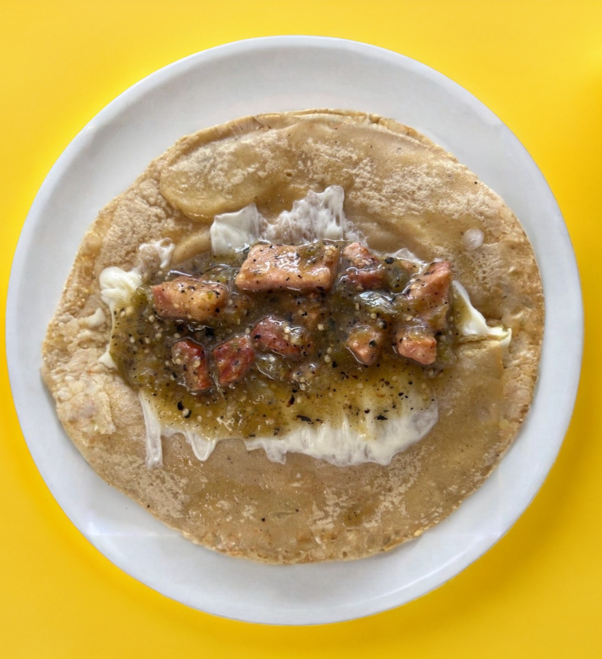 TACO DE CHULETA EN SALSA VERDE CON FRIJOLES