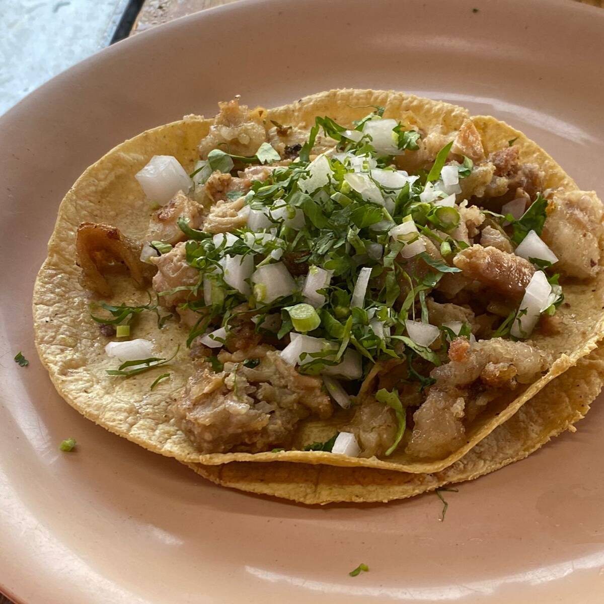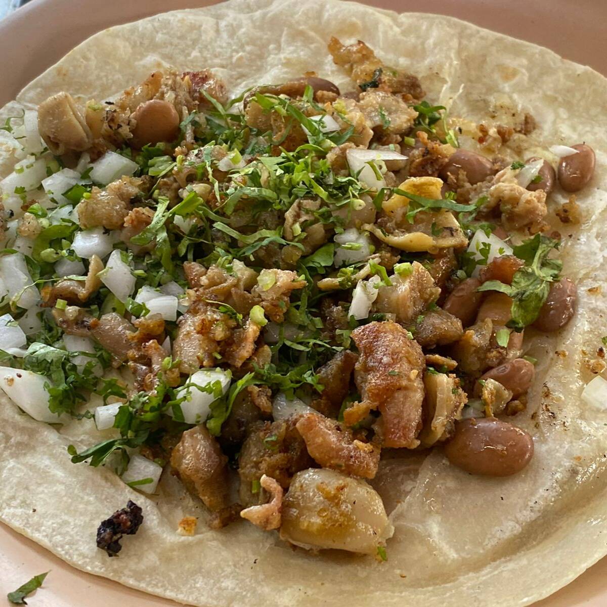 Taco de TRIPA DE RES con dos tortillas #14, se prepara con salsa y con verdura aparte.