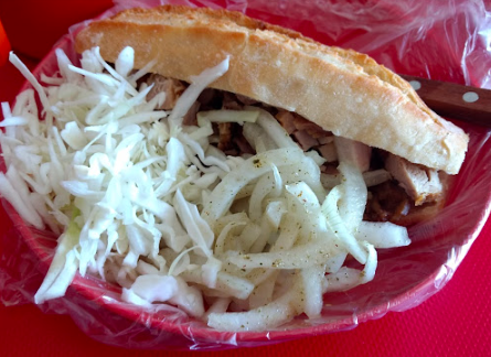 Torta ahogada de carne acompañada de cebolla desflemada y de nuestra deliciosa salsa estilo jalisco