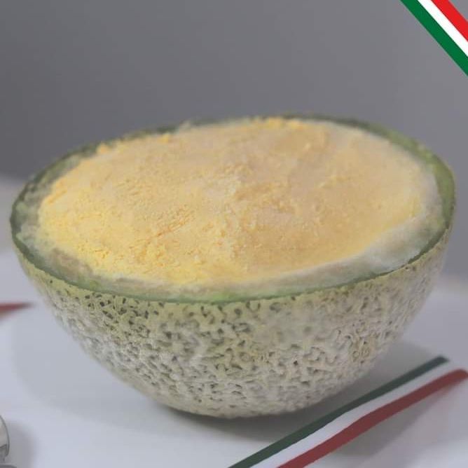 Helado sabor melon envasado en su cascara