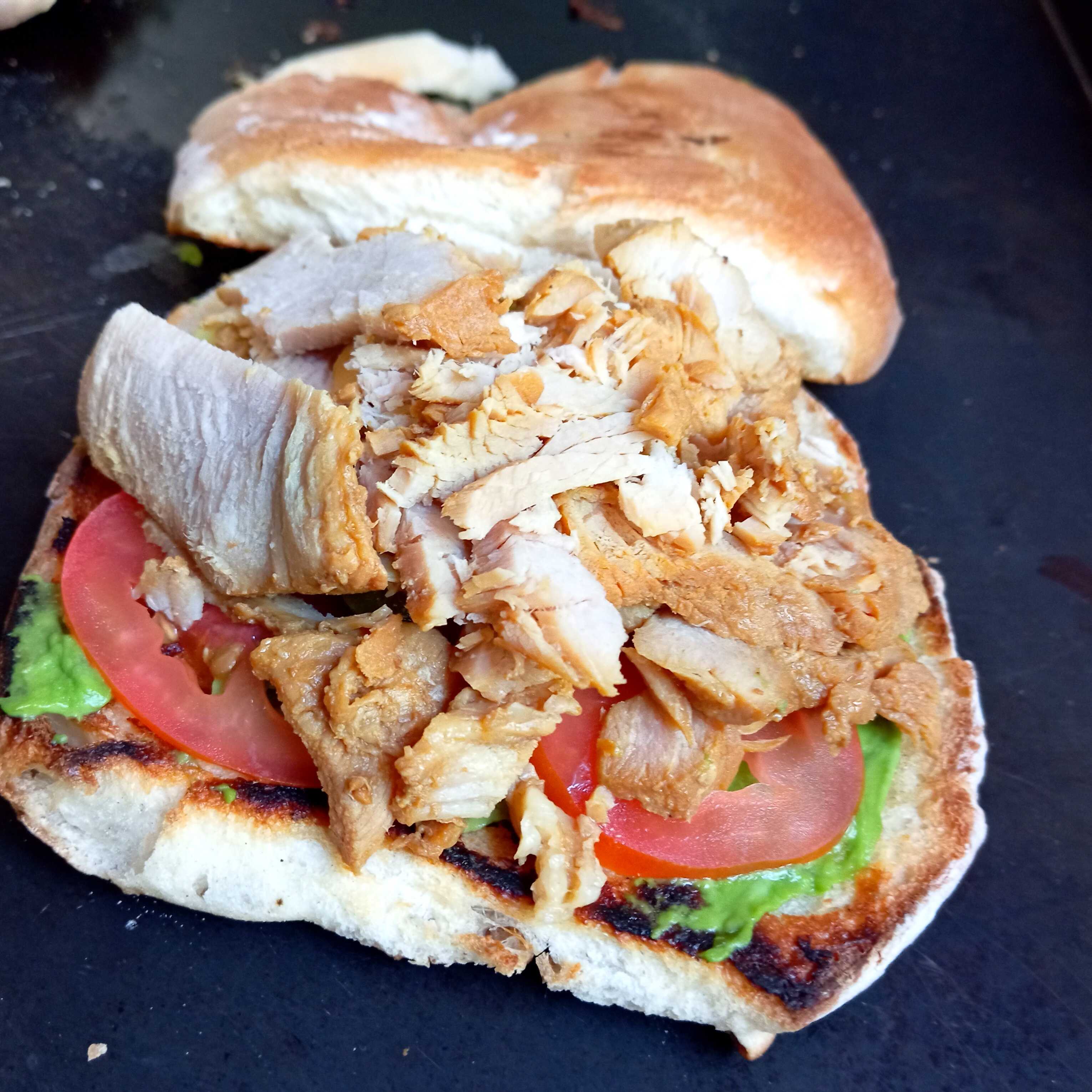 Pan redondo relleno de Chorizo picado,aguacate,jitomate,cebolla,chile en vinagre y crema