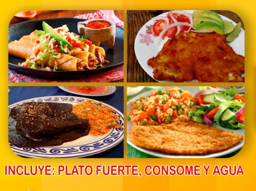 Comida corrida platillo+consomé+agua