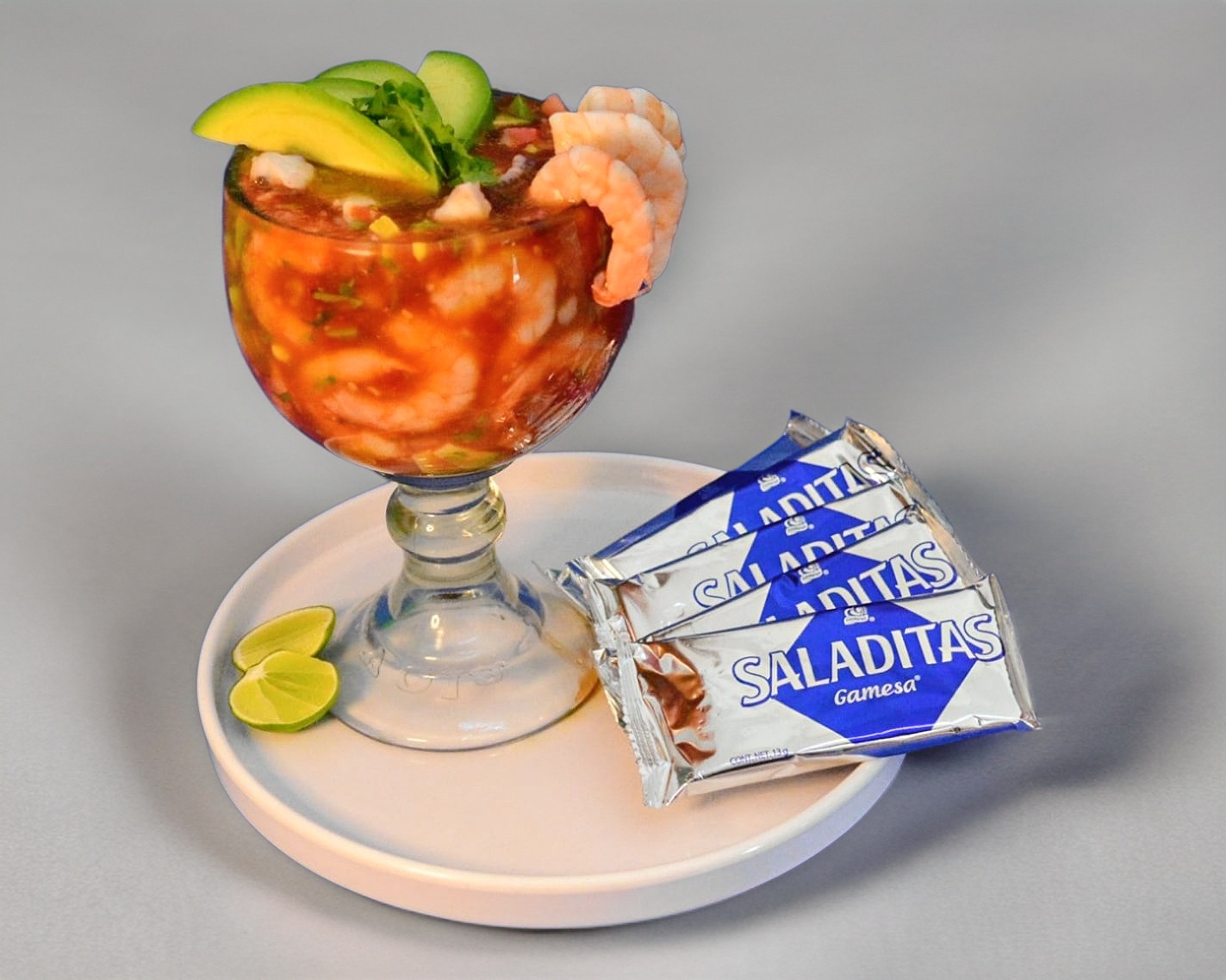 Ceviche, camaron cocido, pulpo pepino, mexicana (jitomate, cebolla, cilantro),