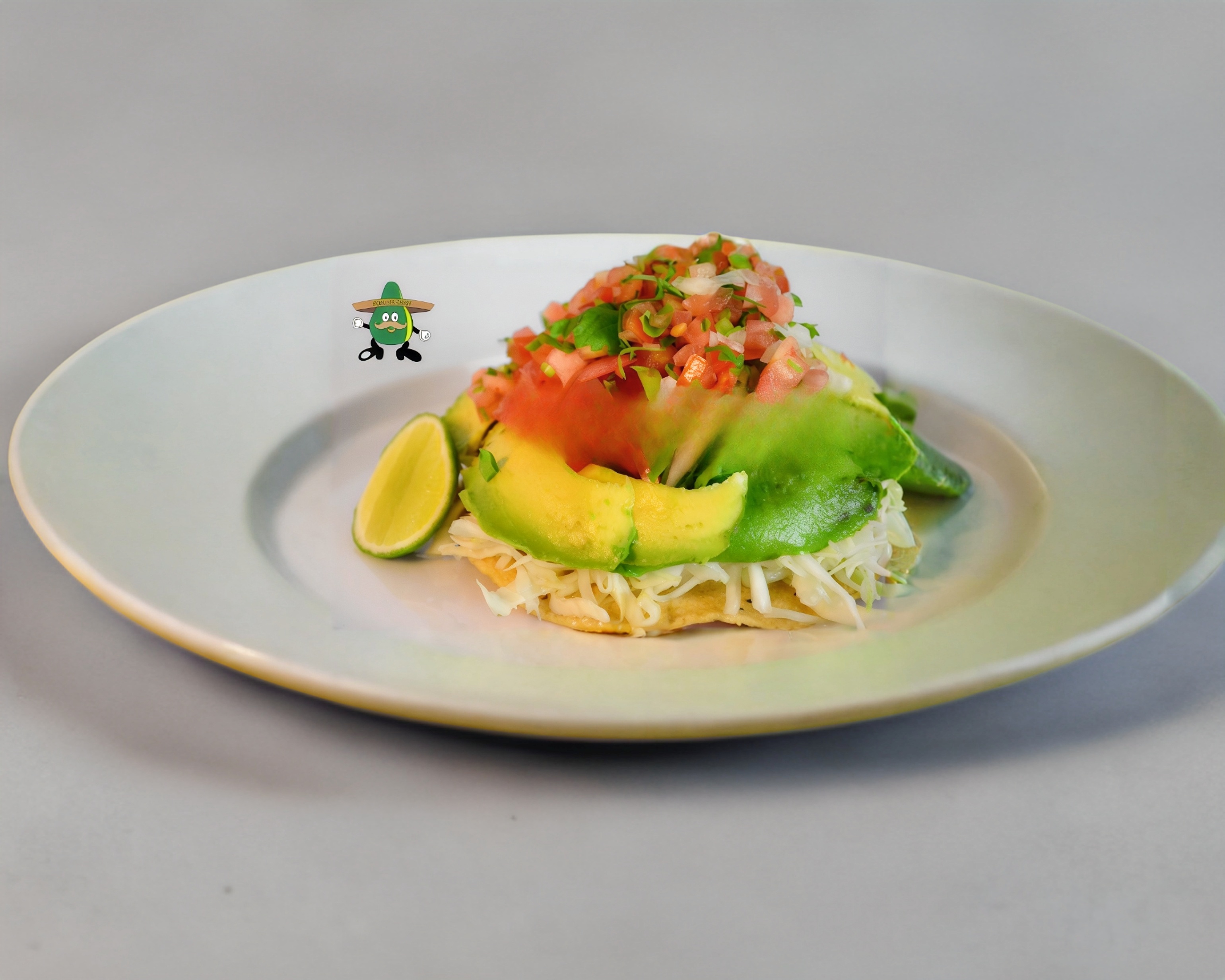 Tostada de 250 GR aproximado tomate cebolla aguacate para una persona