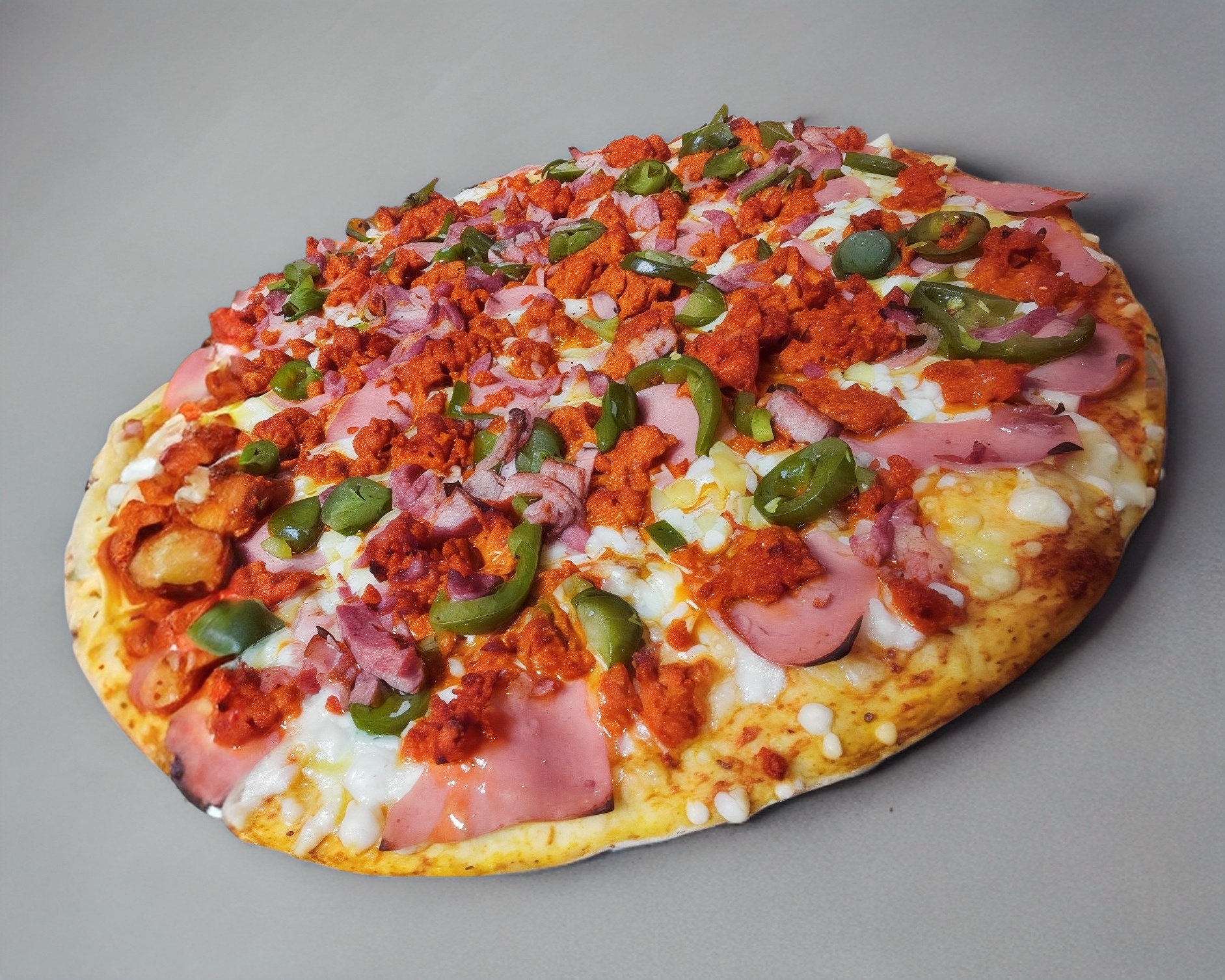 Pizza Grande de 36CM con 8 Rebanadas de Jamon, Piña & Mezcla de Quesos Premium, incluye 1 bolsa de chimichurri.