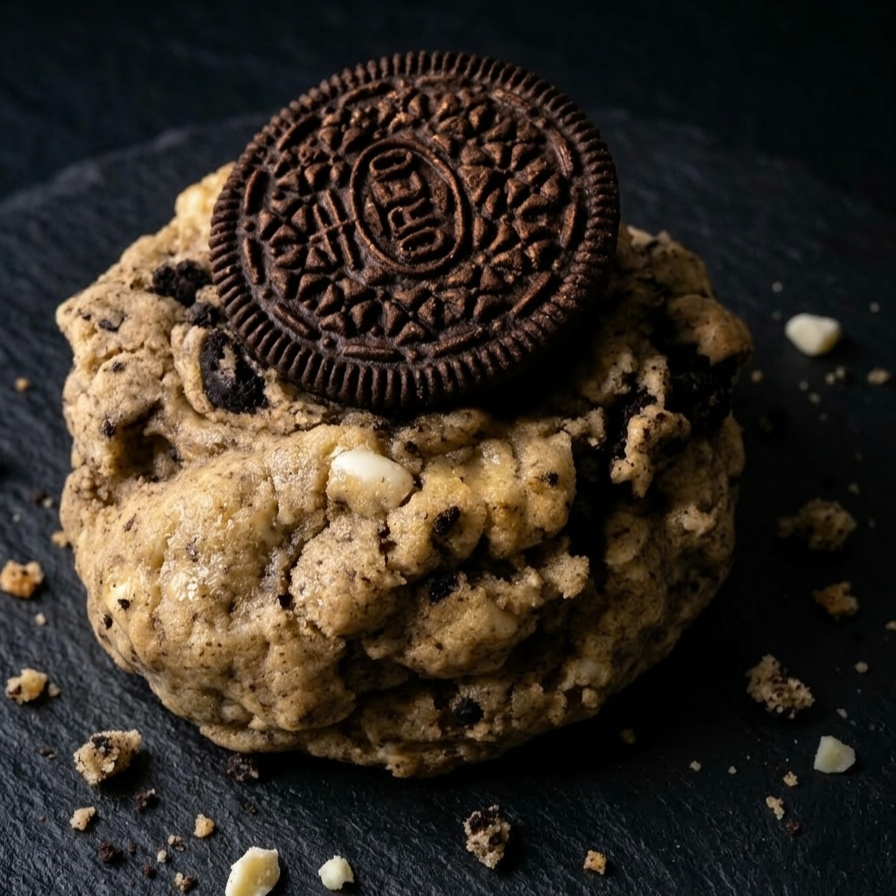 Deliciosa galleta de vainilla con chispas de chocolate y trozos de galleta oreo