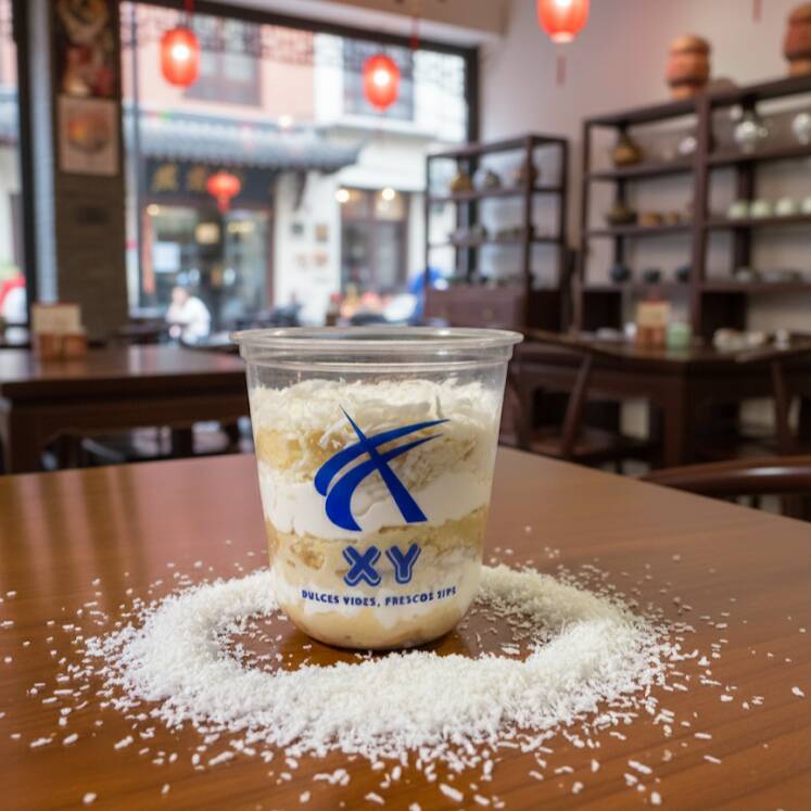 Deliciosa combinación de pan de vainilla, con crema batida y coco rayado