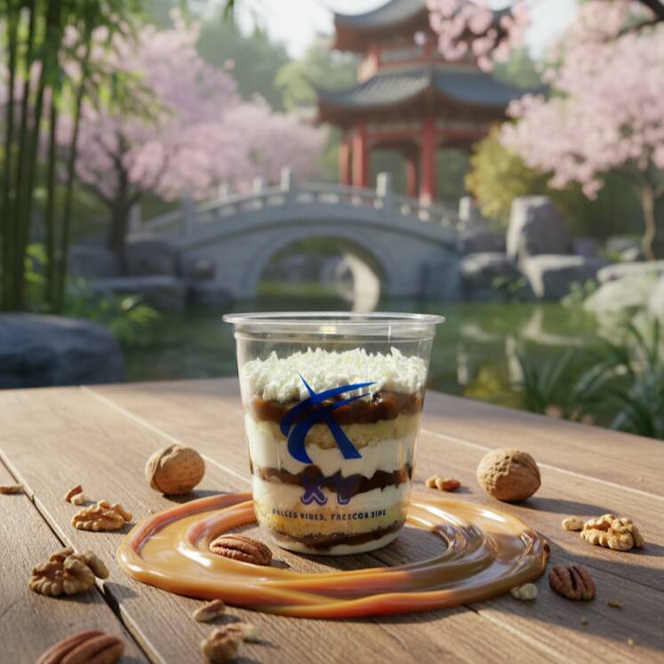 Deliciosa combinación de pan de vainilla, crema batida, dulce de leche y nuez