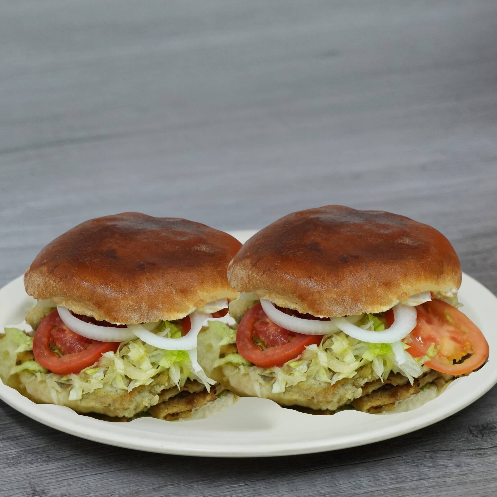 Combo de 2 Tortas de milanesa de puerco. Elaborada con pan artesanal, 200g de milanesa de puerco a la plancha, aguacate fresco, mayonesa, lechuga, tomate y cebolla.