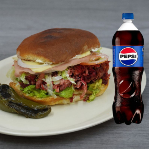 Elaborada con pan artesanal, 200 g de jugosa carne de pastor a la plancha, acompañado de suculento jamón, winnie, queso menonita, aguacate fresco, mayonesa, lechuga, tomate y cebolla.