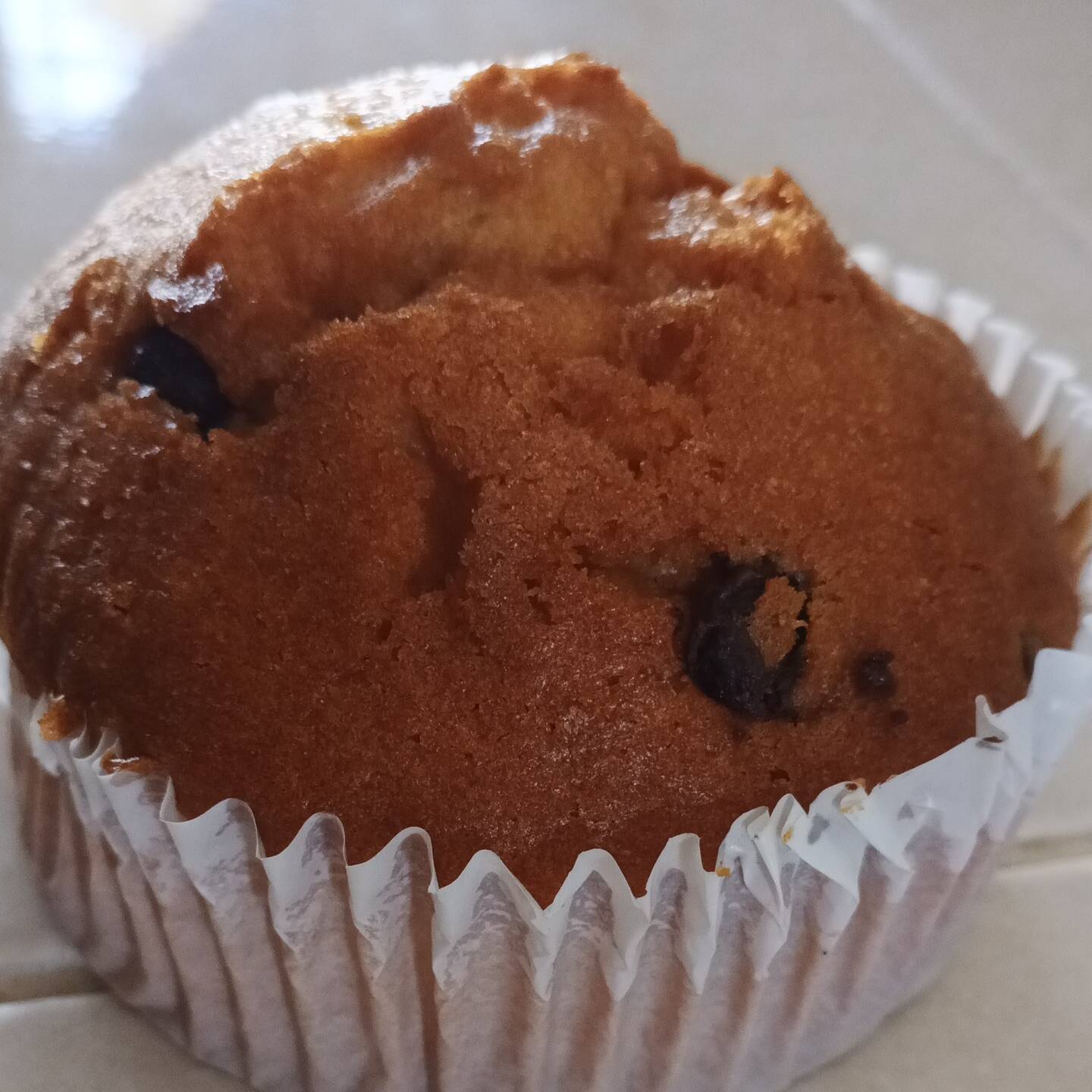 Delicioso muffin de vainilla con abundantes chispas de chocolate real.