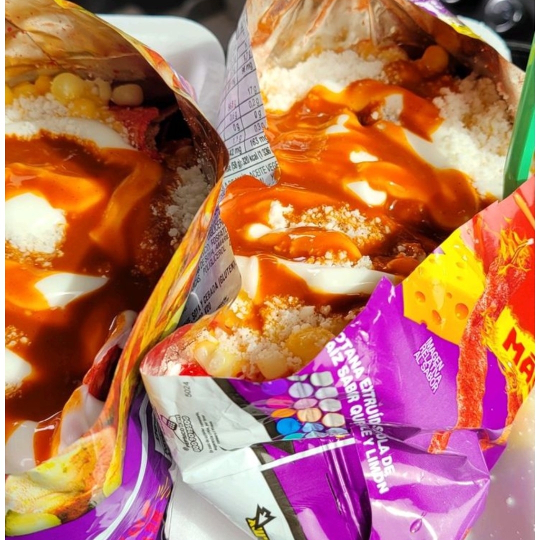 Ingredientes: Queso amarillo para nachos, frijoles, chiles curtidos (opcional), queso para elote (opcional) sin costo extra