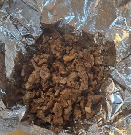 Queso amarillo, 250g de bistec, tocino, salchicha p/ asar, curtidos.