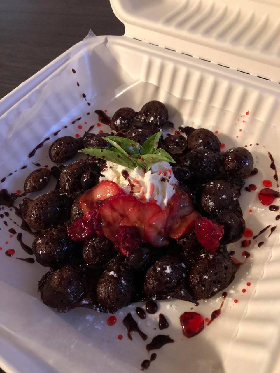 Pan integral tostado, huevo, tocino, tomate, champiñón y queso mozzarella fresco.