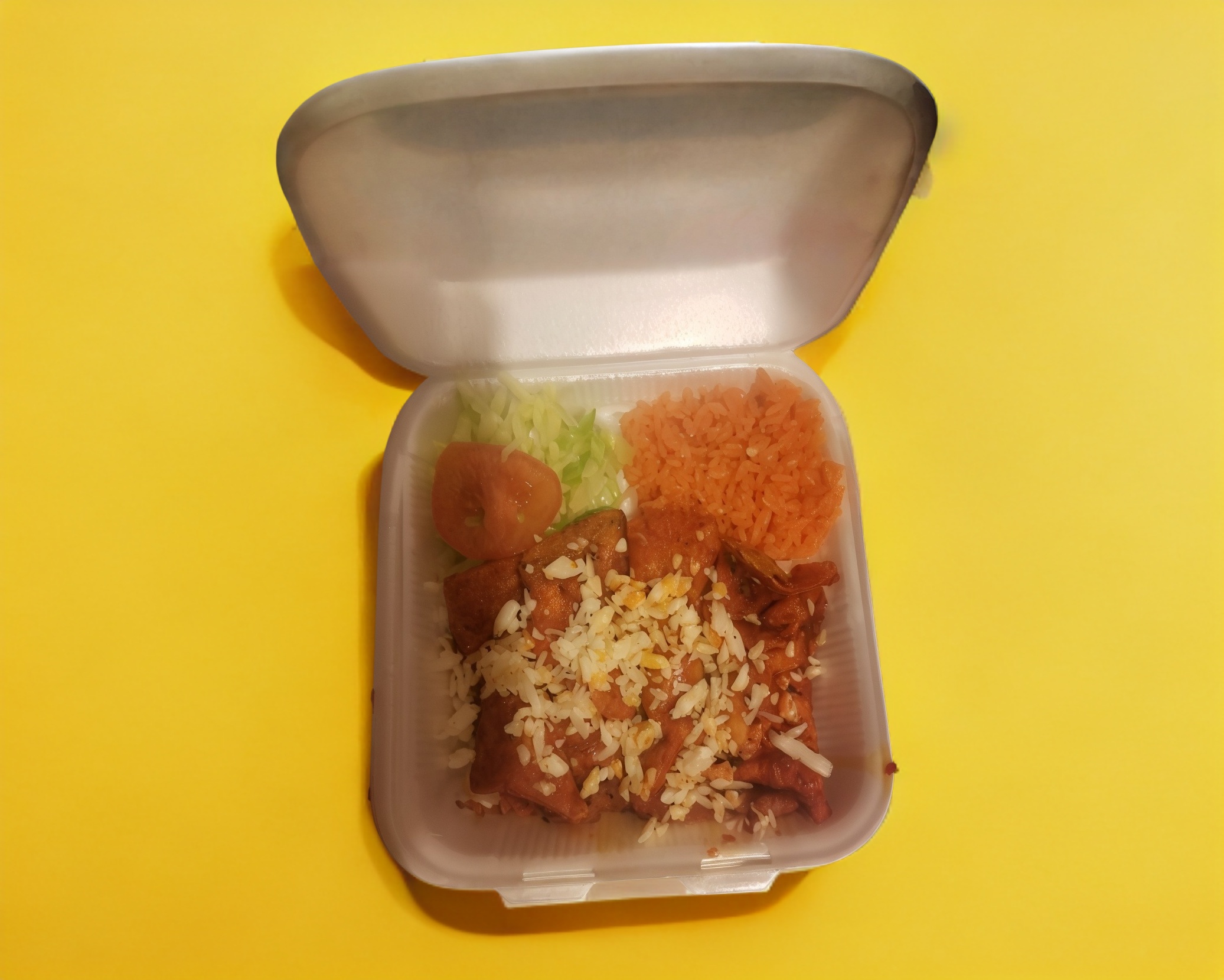 Son cuatro gorditas de maiz fritas de picadillo con su lechuga y tomate acompañado de su arroz rojo y su salsa
