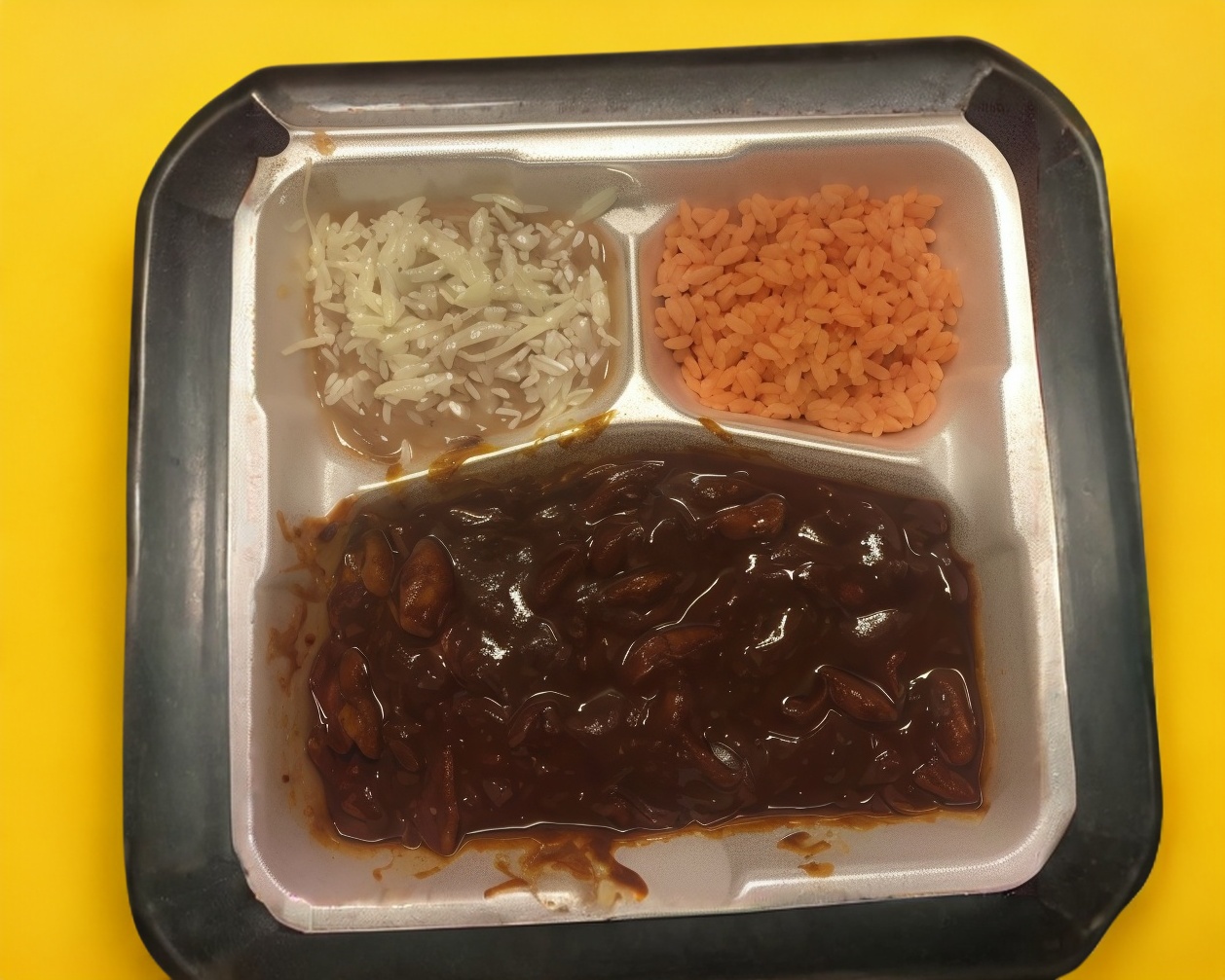 Mole poblano con su arroz rojo y frijoles con queso acompañado con sus tortillas de maiz