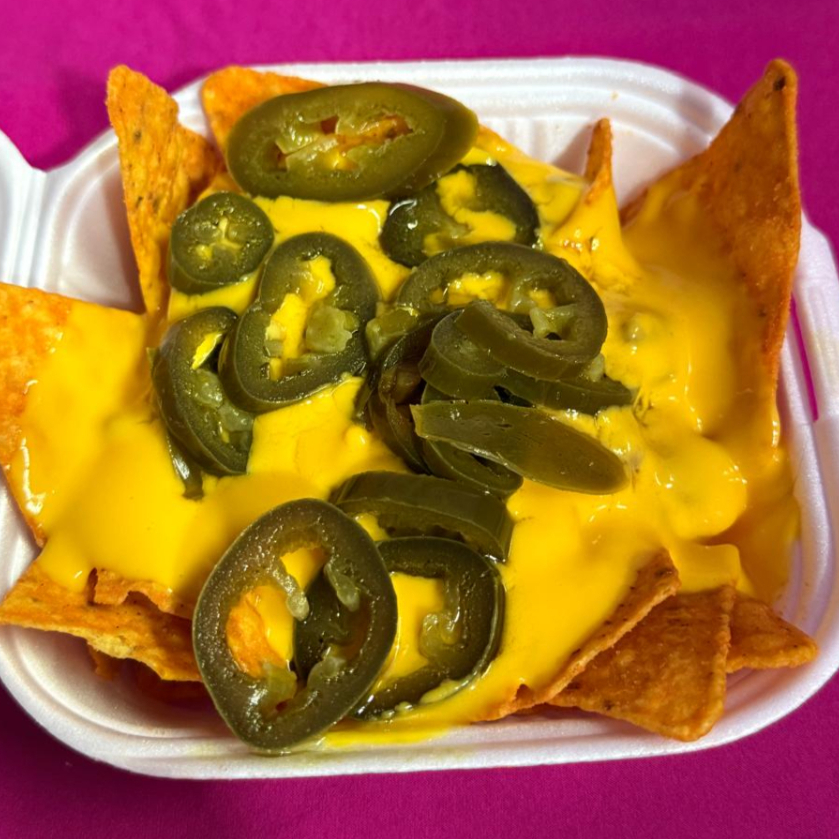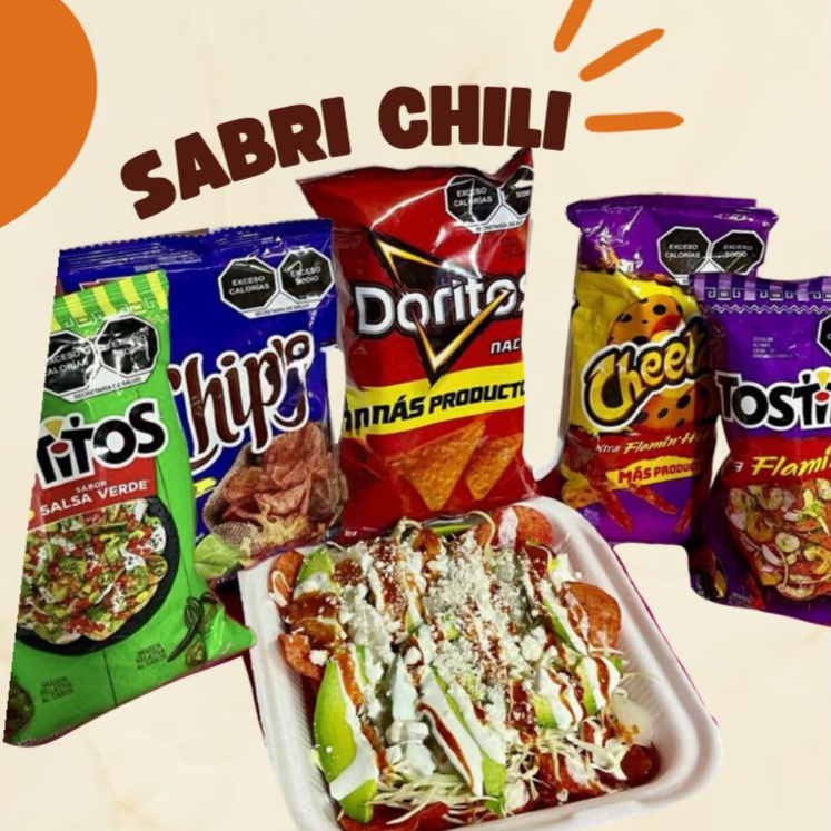 Sabritas a elección, frijoles, queso amarillo, chiles jalapeños curtidos y tu salsa picante.
