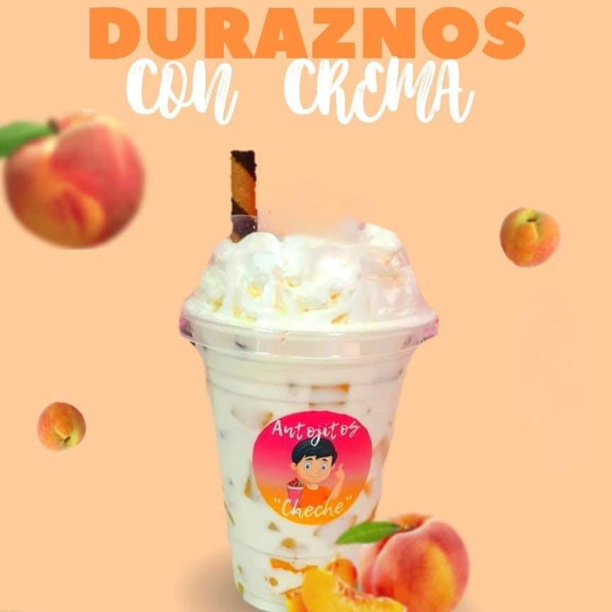 Duraznos congelados con almíbar, espuma, crema, 1 Topping, 1 Jarabe, 1 popote de chocolate