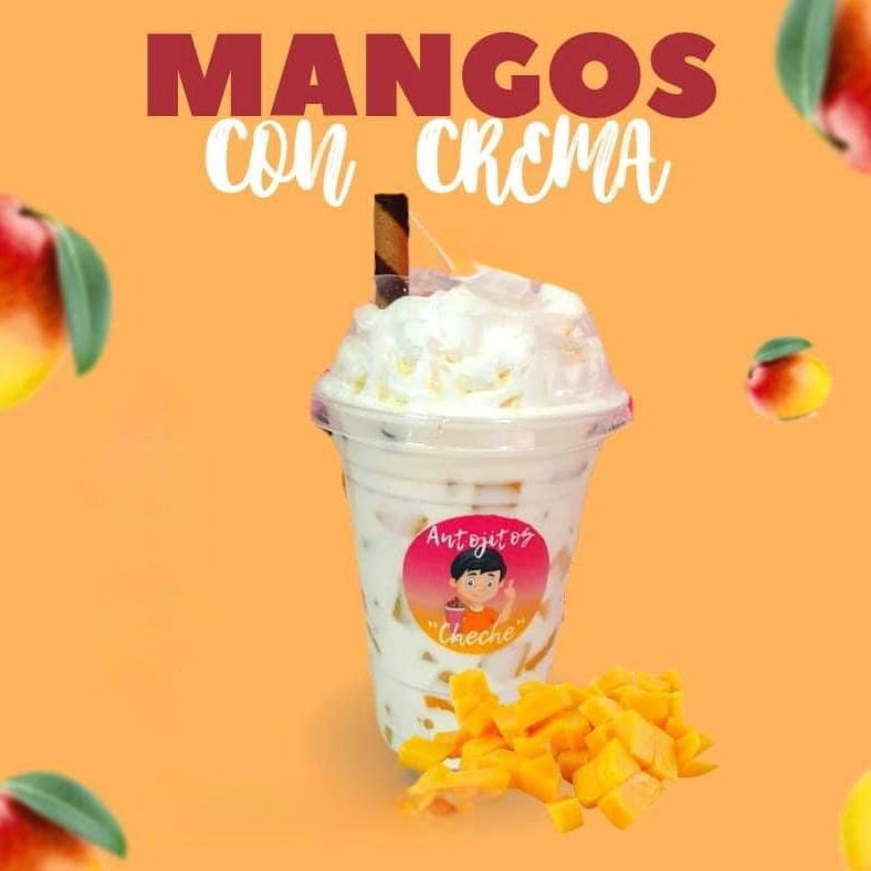 Mangos congelados, crema, espuma, 1 Topping, 1 Jarabe, 1 popote de chocolate.