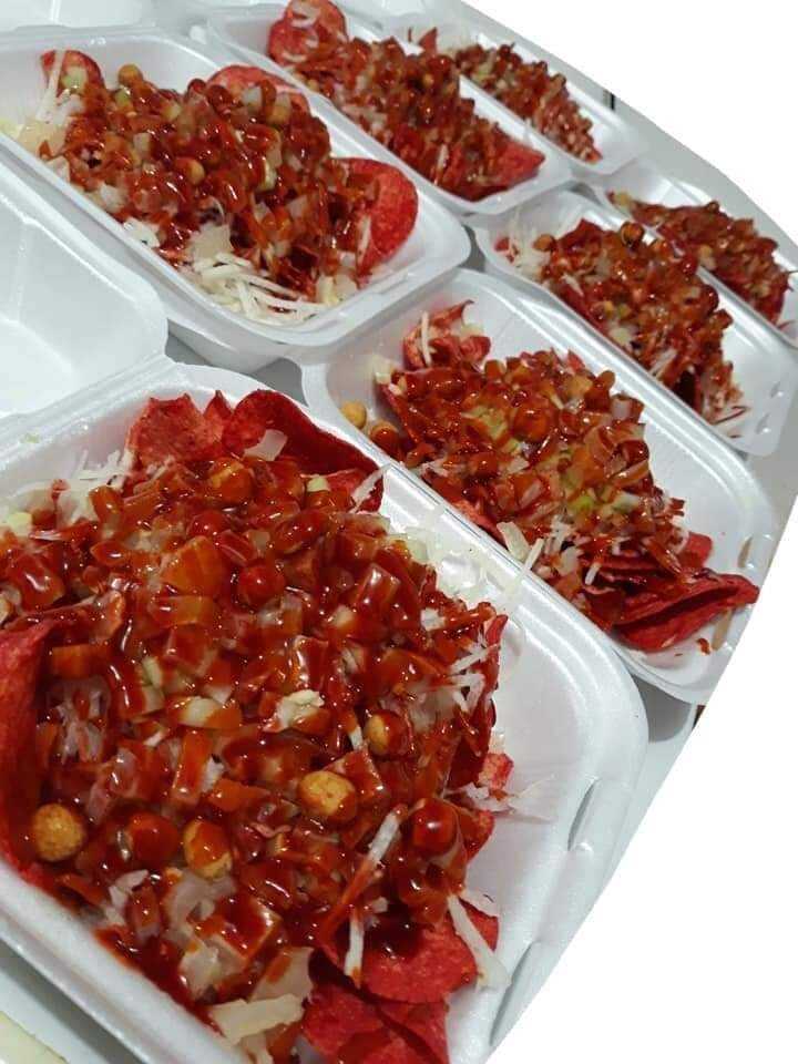Papitas, Maruchan, elote, queso amarillo, queso blanco, crema y Valentina.