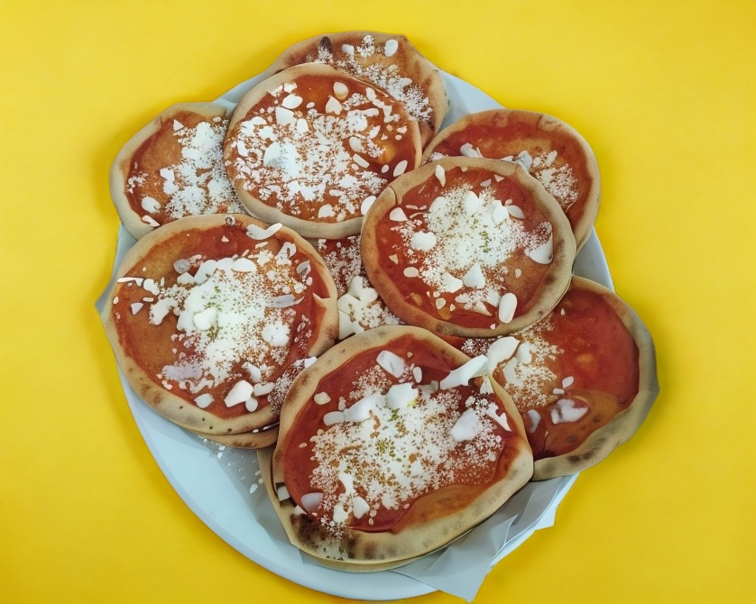 4 picaditas en salsa roja acompanadas de lechuga , queso fresco y queso de ebra