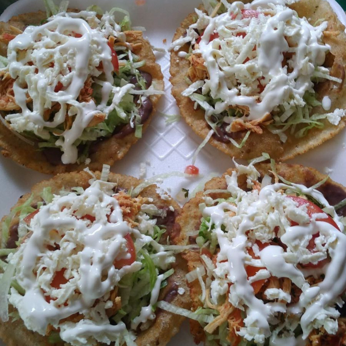 orden de 3 : Picada de maíz, pollo a la mexicana, frijoles refritos, lechuga fresca, crema, queso rallado y salsa al gusto.