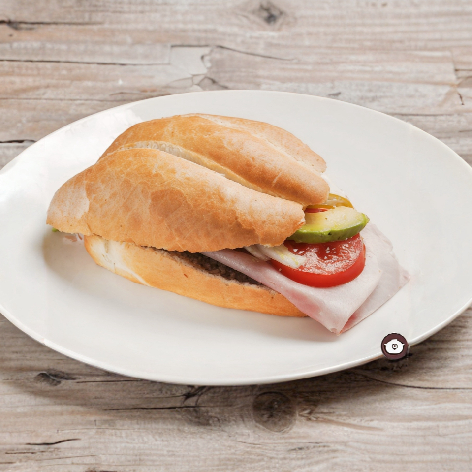 Pavo, lechuga, tomate, aguacate, mayonesa, winnie, jamón, aparte lleva salsa verde o roja.